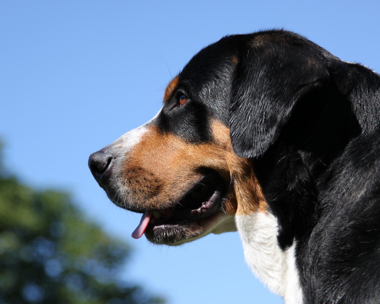Wallpaper Greater Swiss Mountain Dog on a sky background
