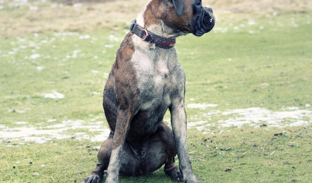 Wallpaper Sad puppy boxer sitting on the sidewalk