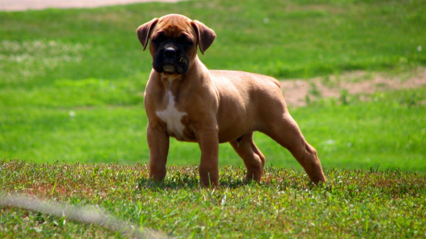 » Wallpaper Muscular boxer puppy on grass