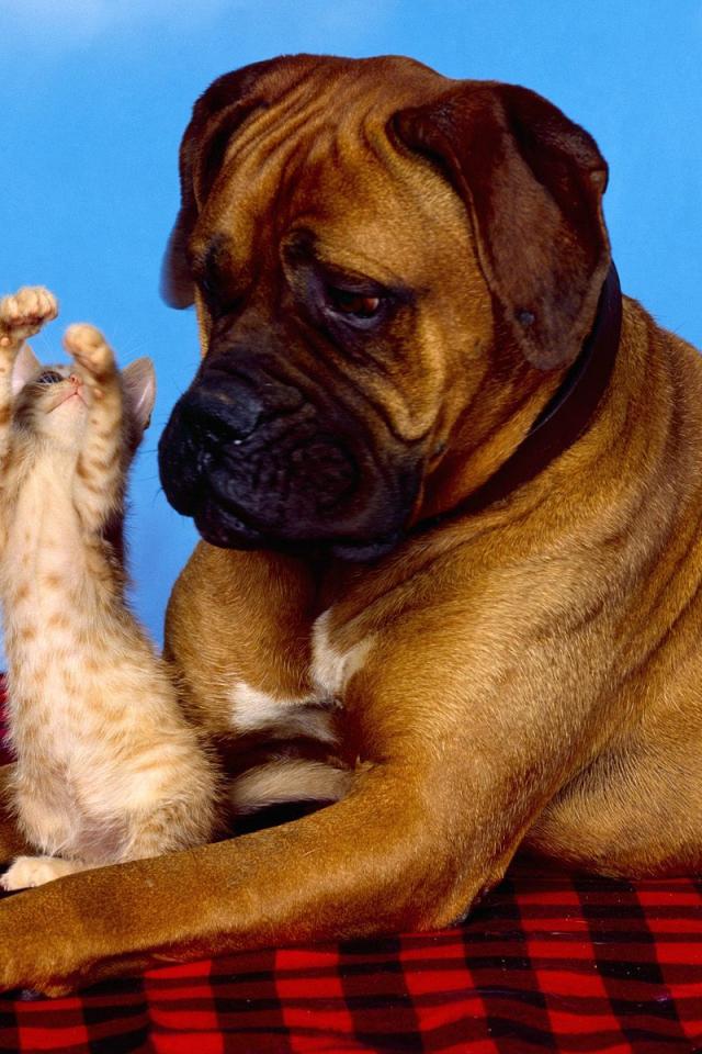 Wallpaper Boxer and red kitten