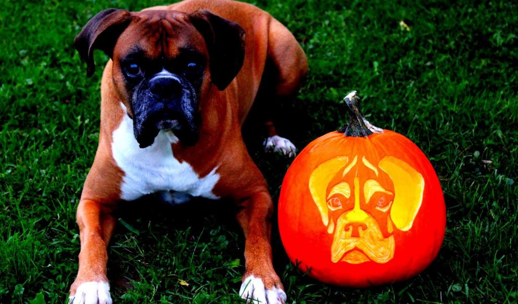 » Wallpaper Boxer and pumpkin