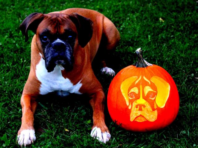 » Wallpaper Boxer and pumpkin