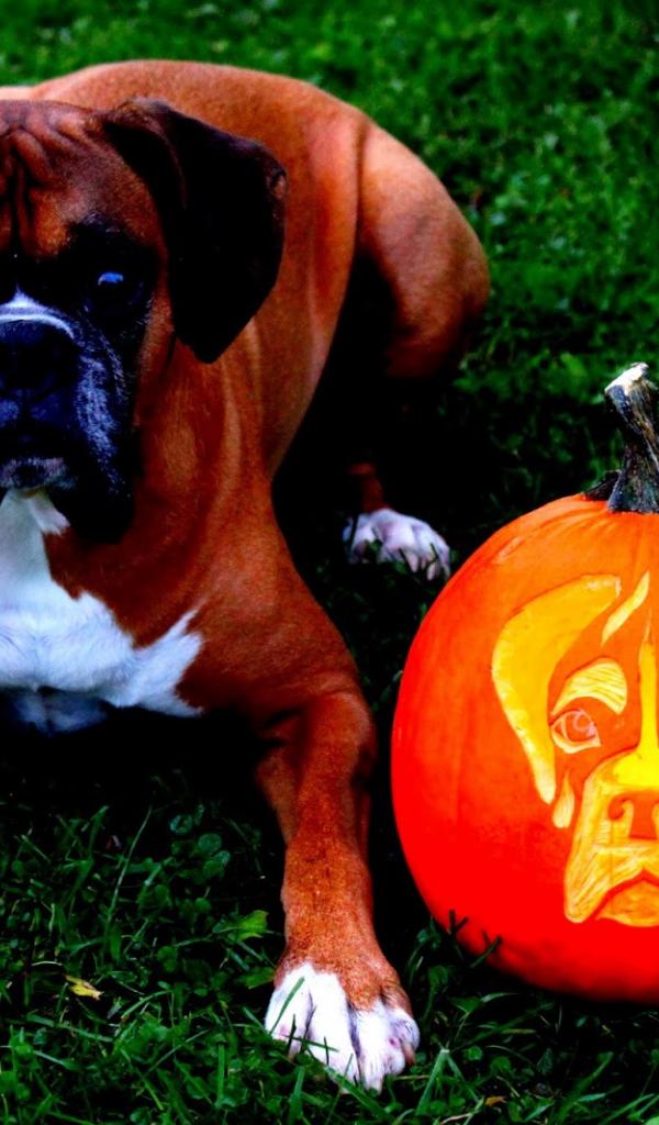 » Wallpaper Boxer and pumpkin
