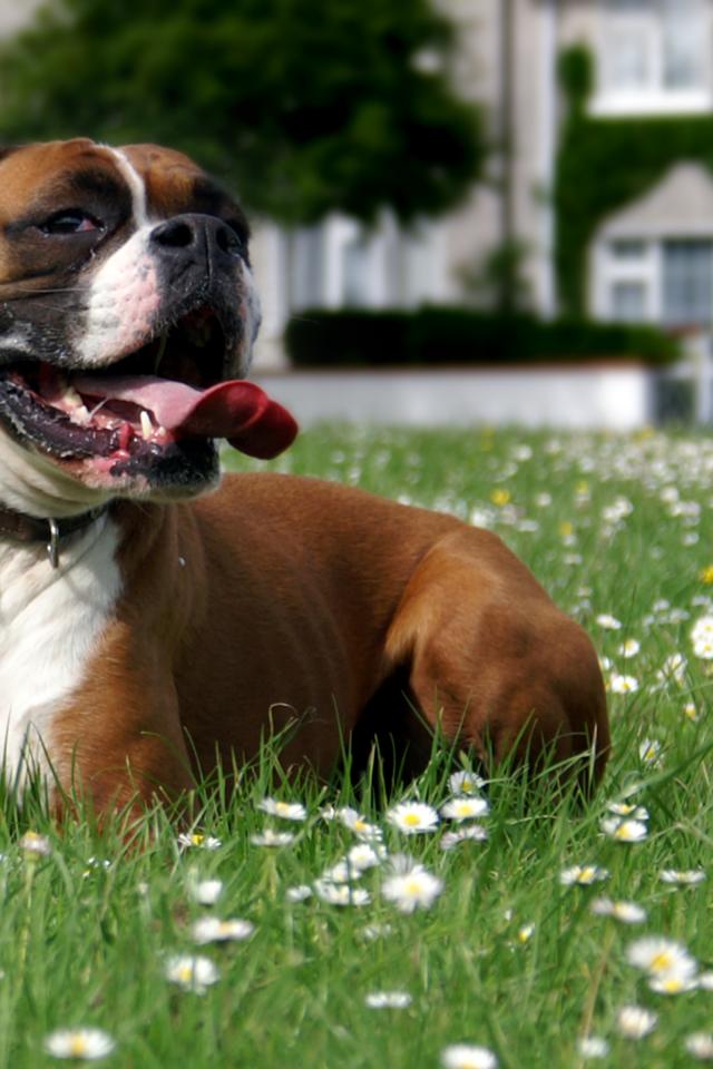 Wallpaper Boxer resting on the grass