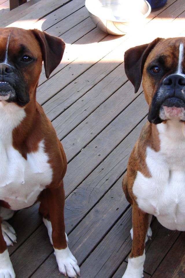 Wallpaper Three boxers in the yard