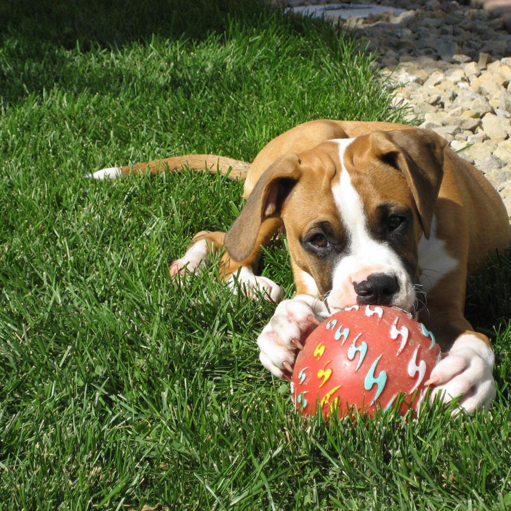 Wallpaper Young boxer chewing toy