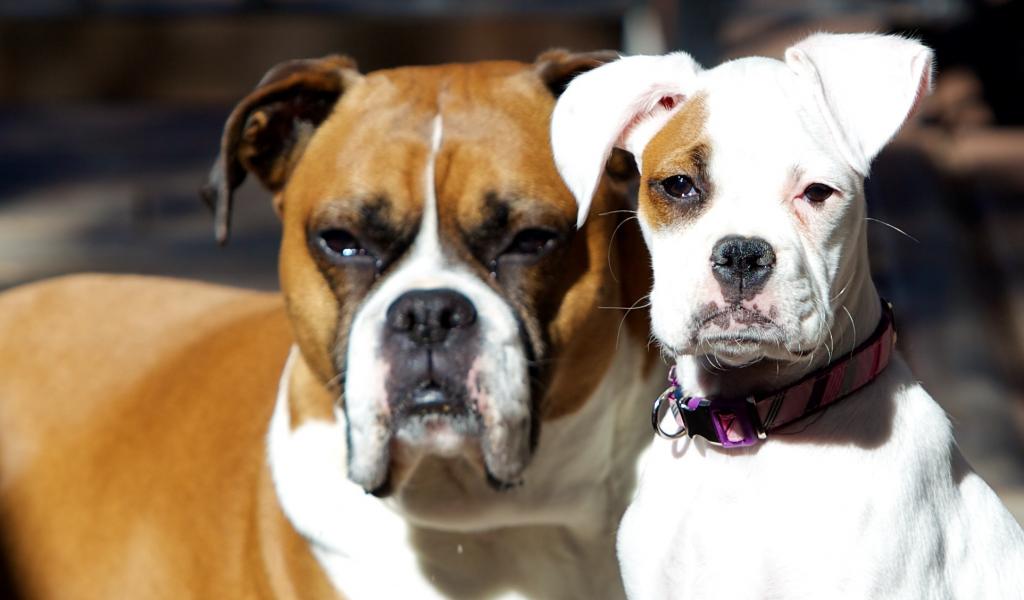 Wallpaper Boxers resting on the grass in the sunny weather