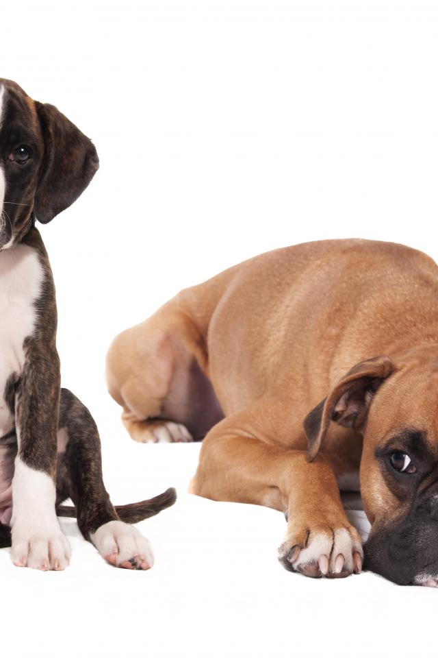 Wallpaper Young and adult boxers on a white background