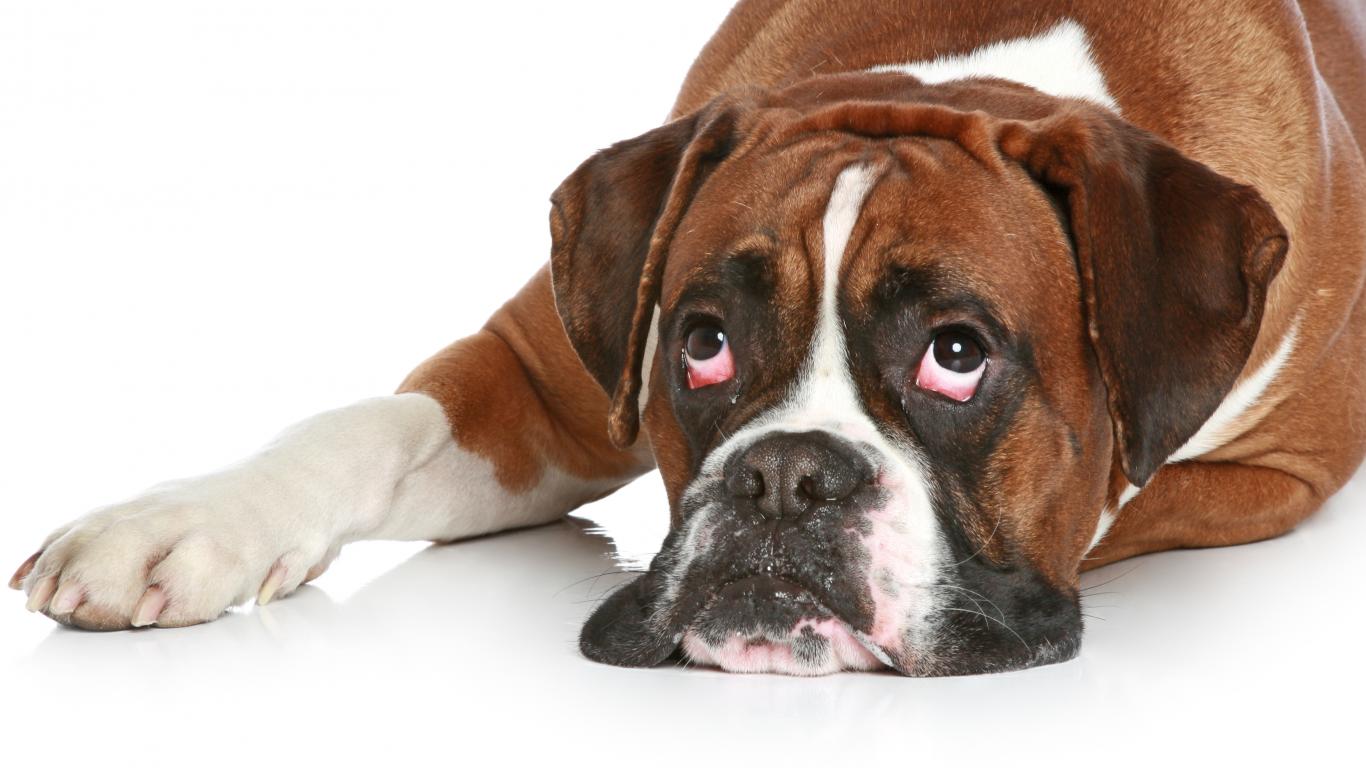 Wallpaper Boxer with apathetic look on a white floor