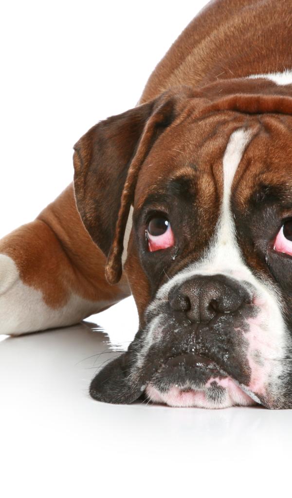 Wallpaper Boxer with apathetic look on a white floor
