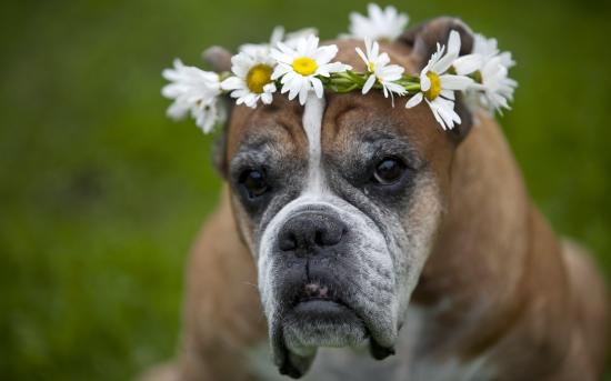 Wallpaper Boxer with a flower wreath on head