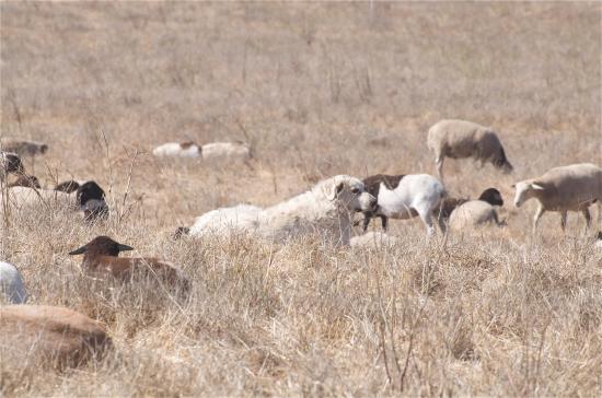 Wallpaper Great Pyrenees dog and a goat