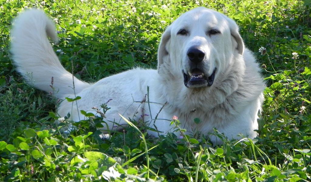 » Wallpaper Great Pyrenees dog resting on grass