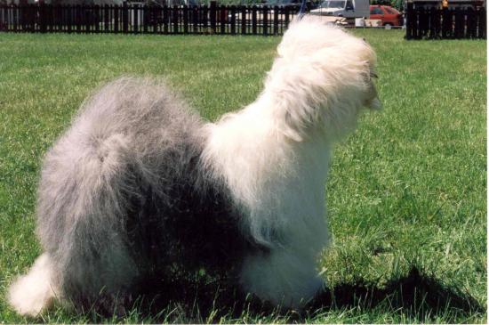 Wallpaper Dog breed bobtail standing on the lawn