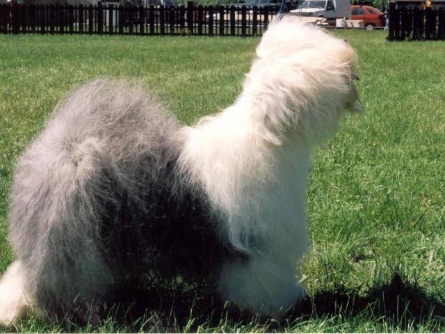 Wallpaper Dog breed bobtail standing on the lawn