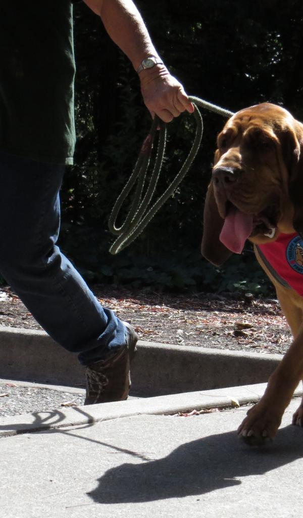 Wallpaper Beautiful bloodhound on a walk with the owner