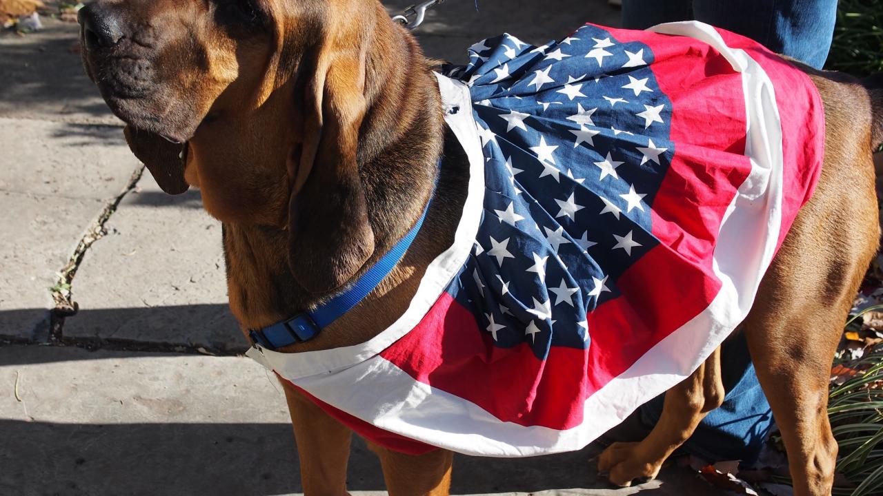 Wallpaper Beautiful bloodhound on a walk with the owner