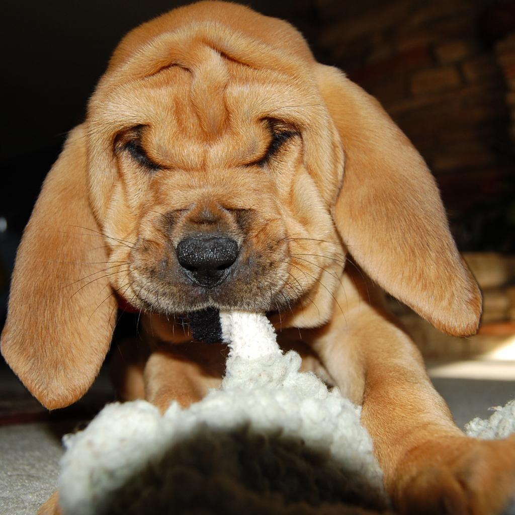 Wallpaper Bloodhound puppy sweetly fell asleep