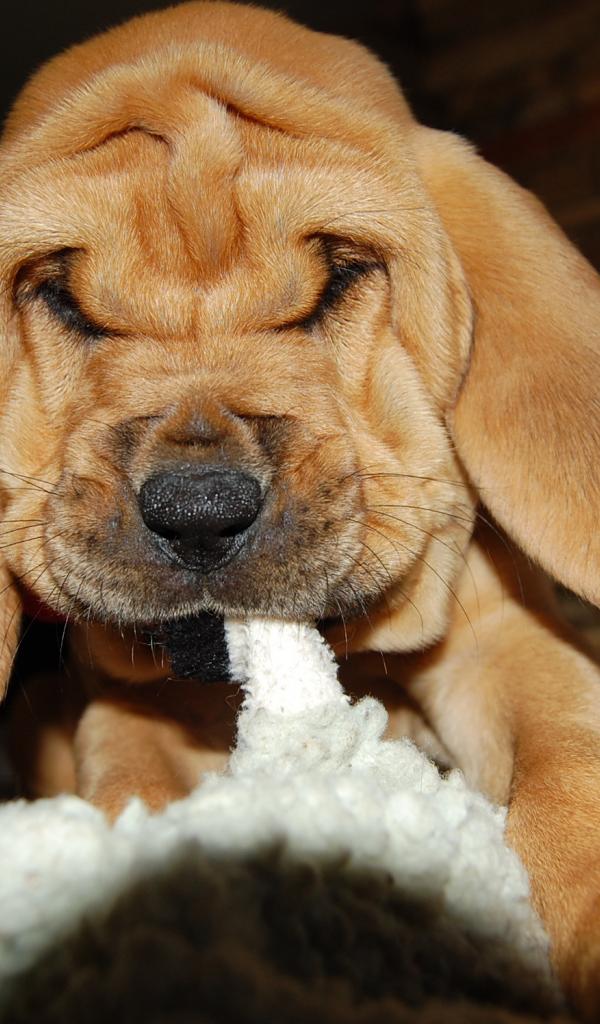 Wallpaper Bloodhound puppy chewing something