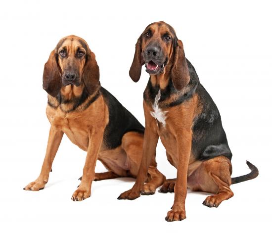 » Wallpaper Two bloodhound sitting on a white background