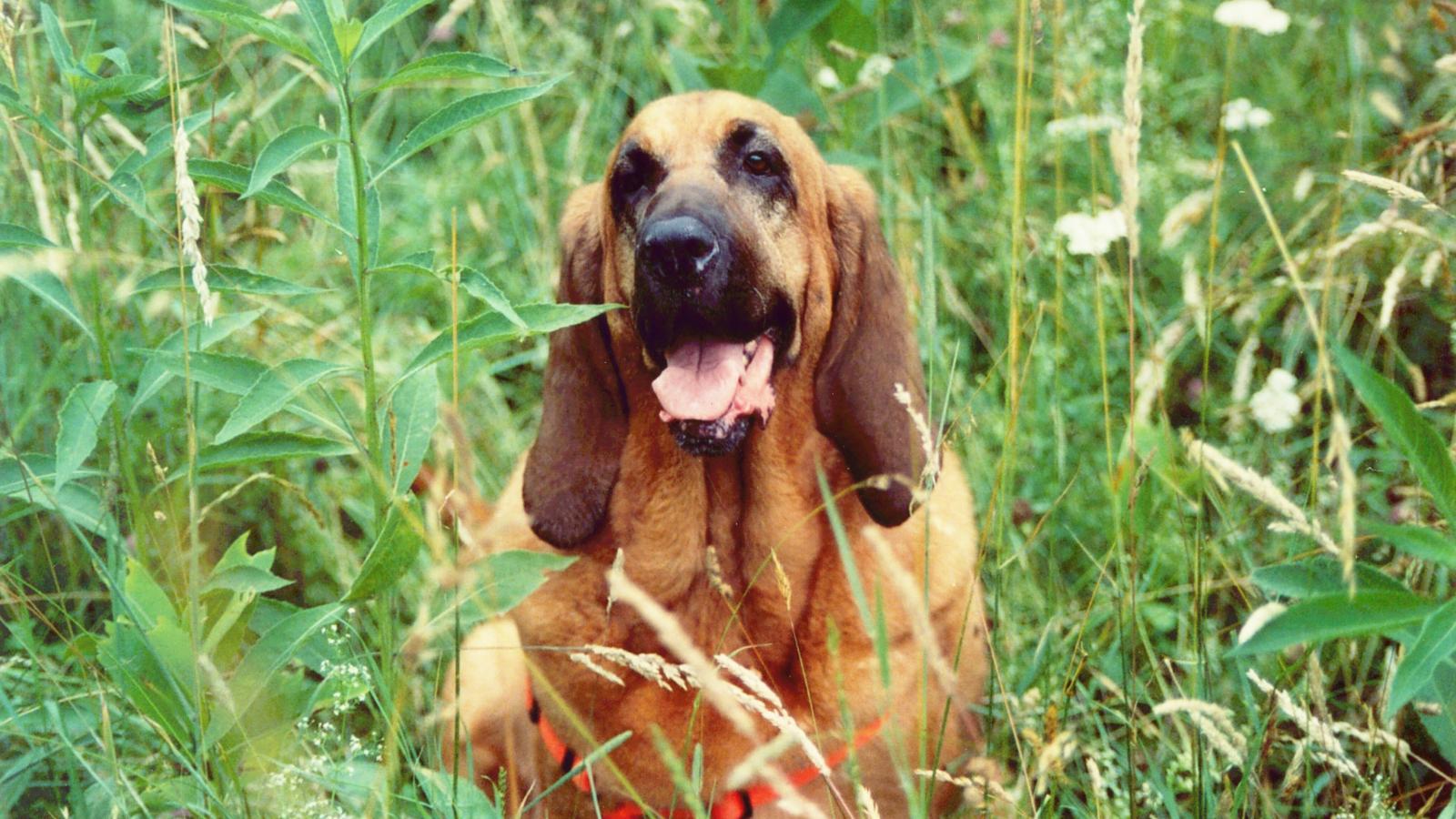 Wallpaper Beautiful Bloodhound in high grass