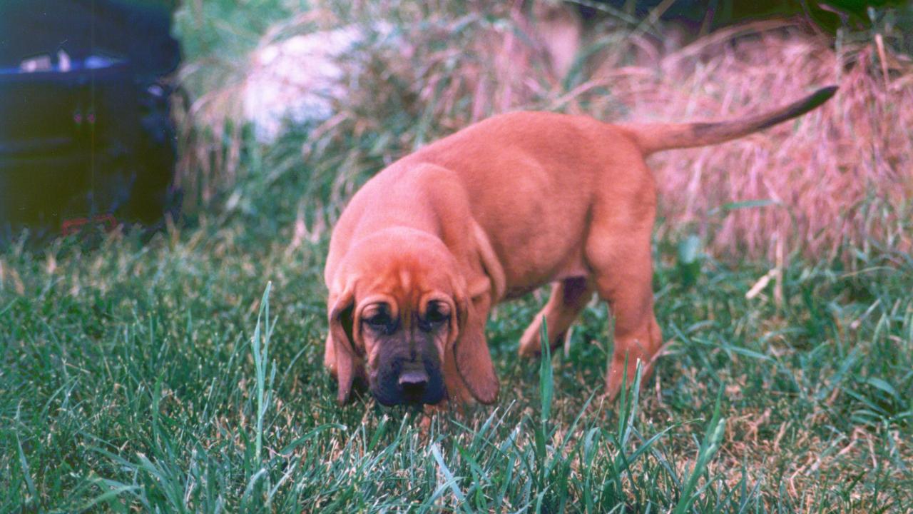 Wallpaper Bloodhound puppy took trail