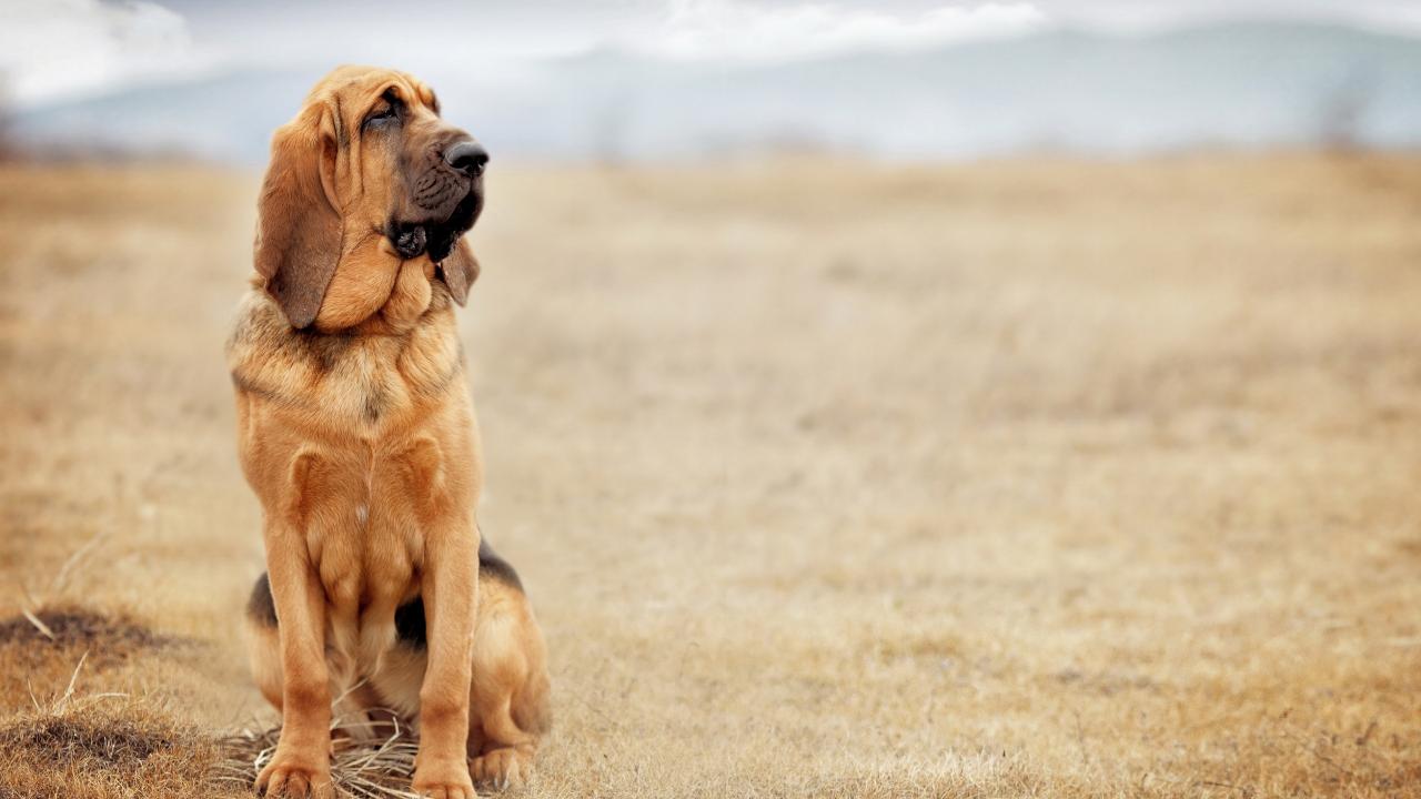 Wallpaper Beautiful bloodhound sitting in a field