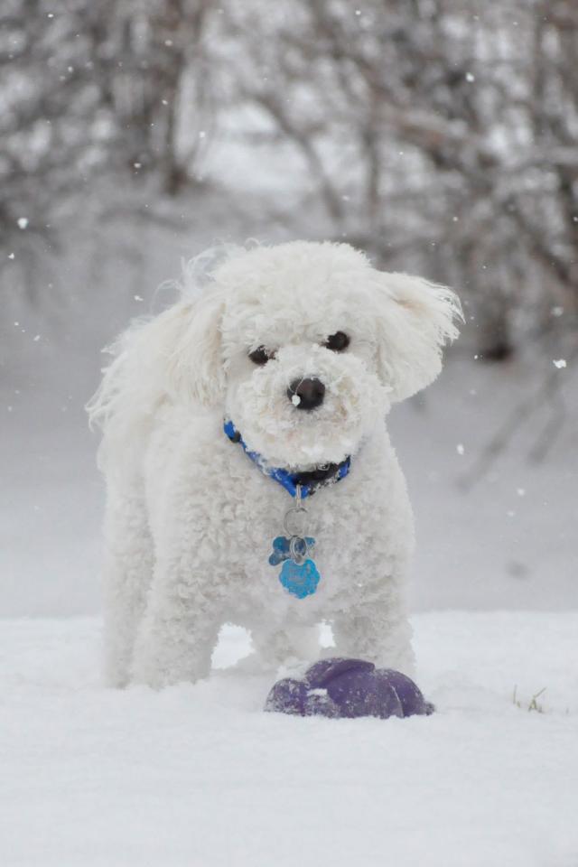 Wallpaper Beautiful dog breed Bichon Frise winter walking