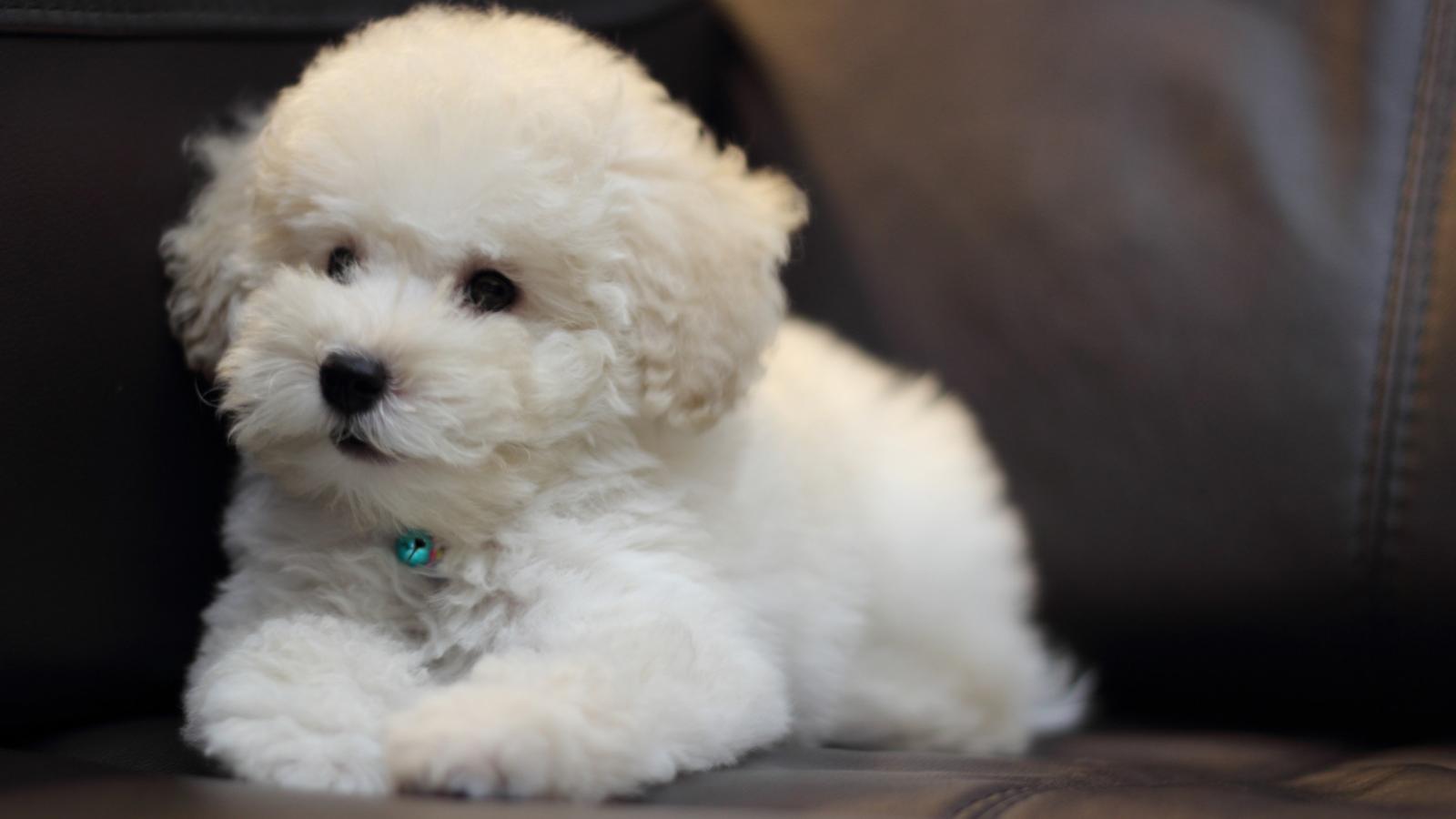 Wallpaper Puppy Bichon Frise on a leather couch
