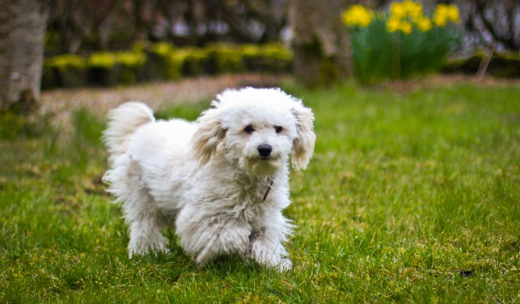 Wallpaper Dog breed Bichon frieze runs across the lawn