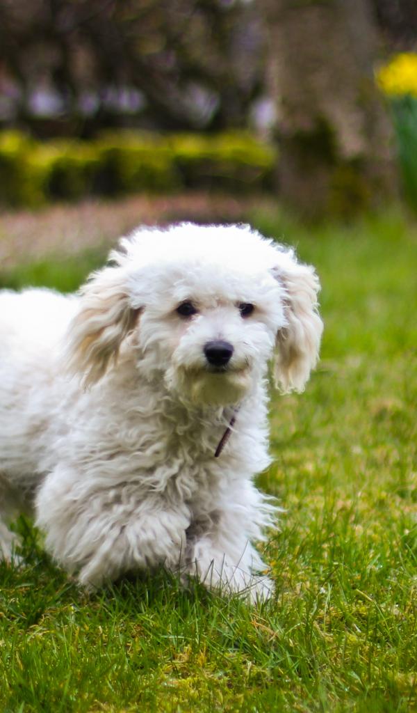 Wallpaper Dog breed Bichon frieze runs across the lawn