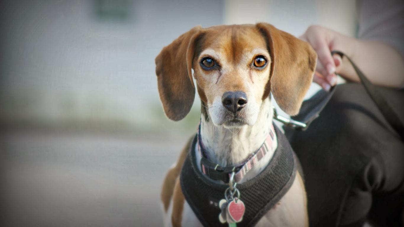 Wallpaper Beagle dog on a leash