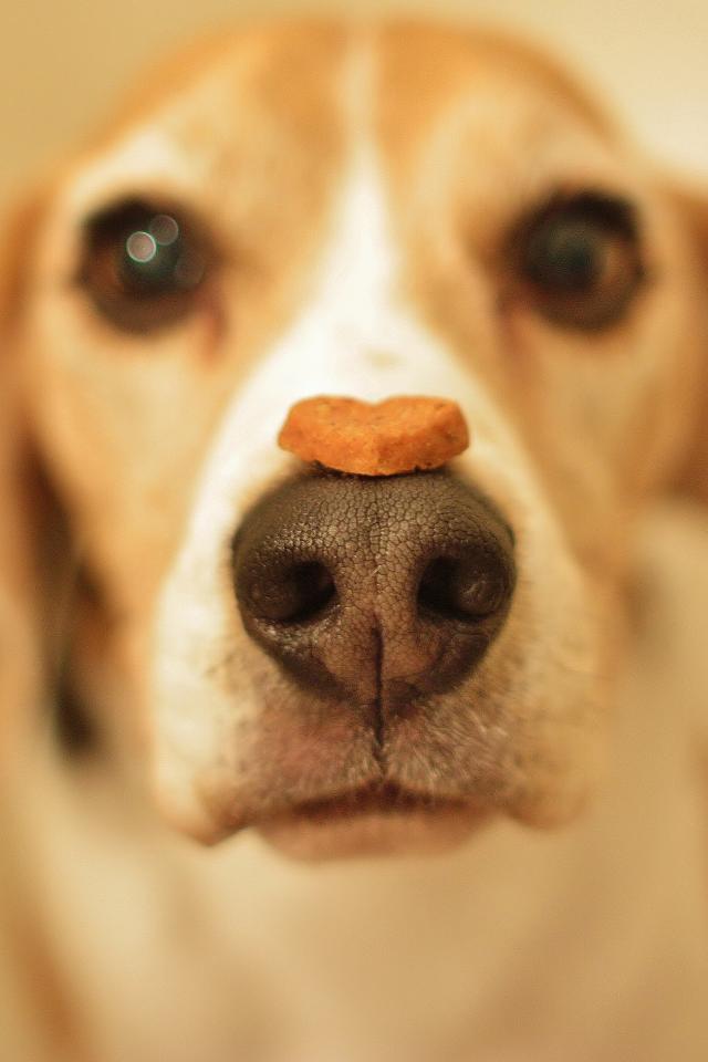 » Wallpaper Beagle dog with a treat on his nose