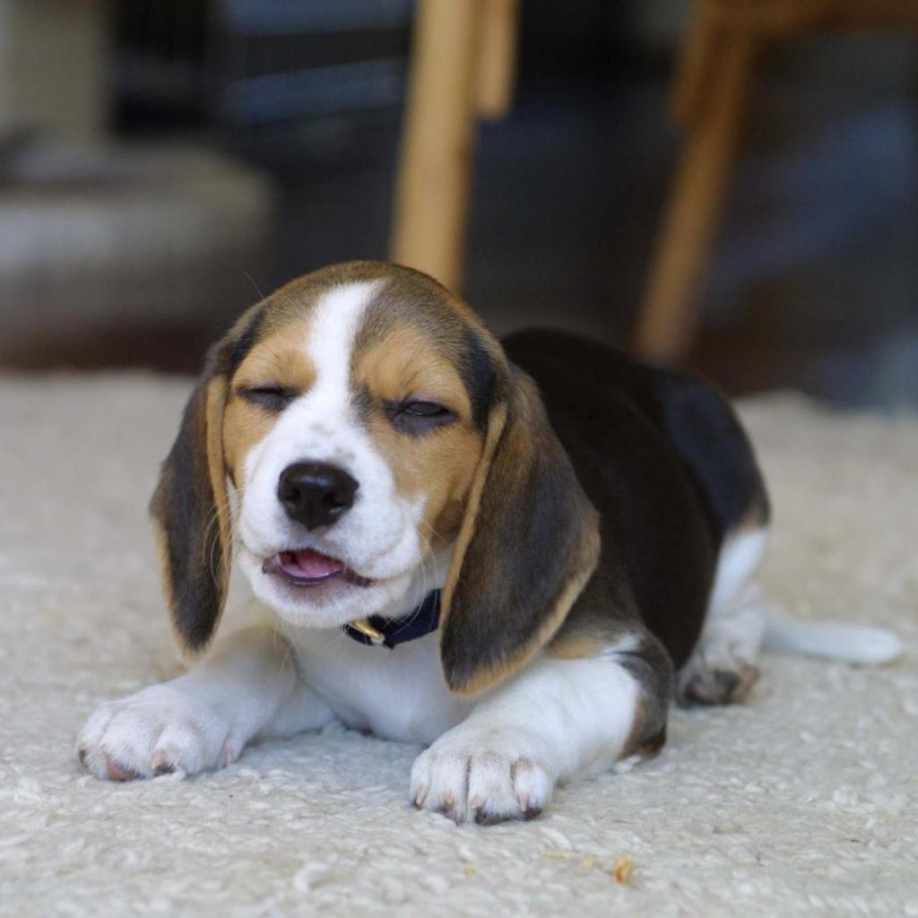 Wallpaper Beagle dog lying on the white carpet