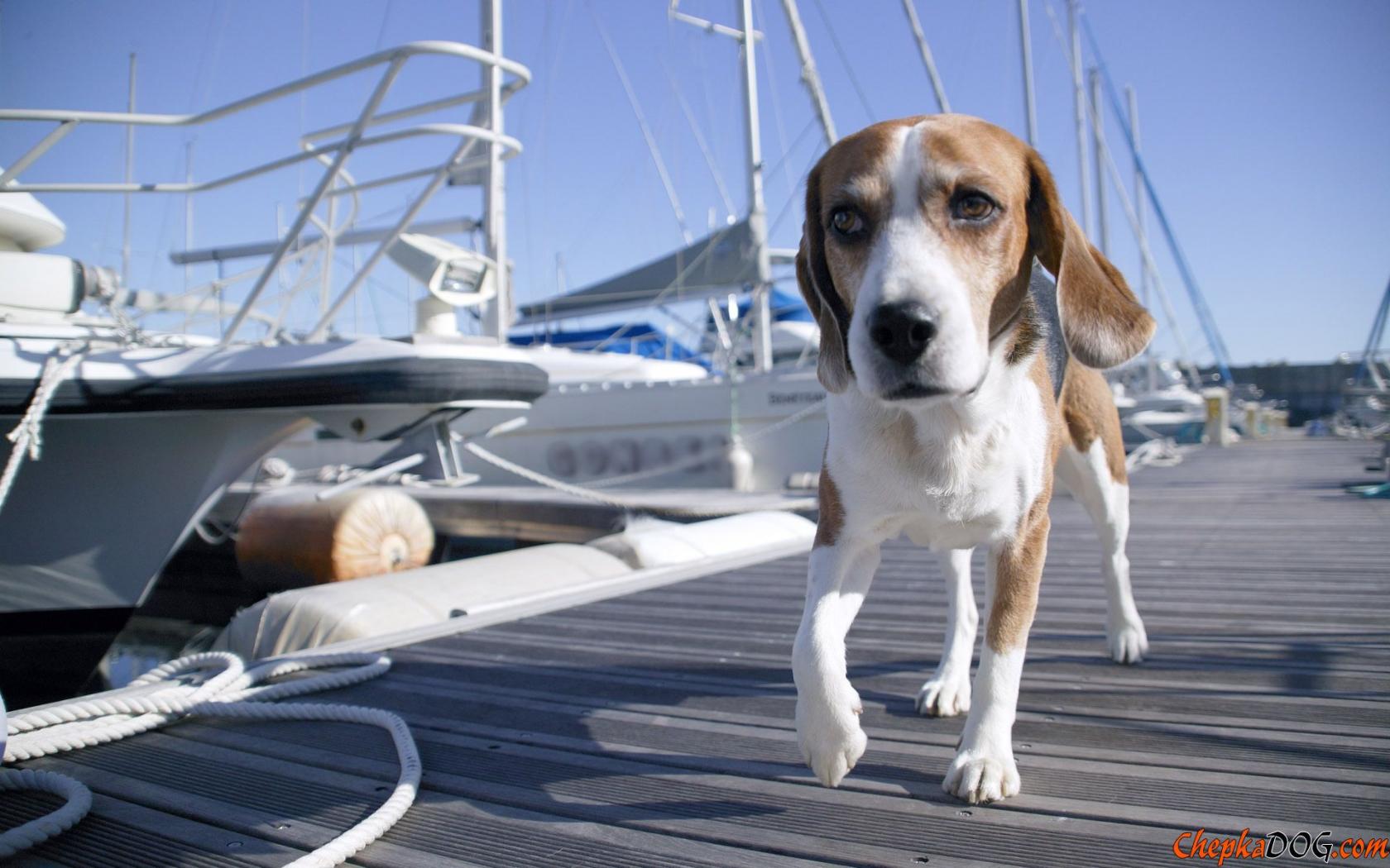 Wallpaper Beagle dog walking on the bridge