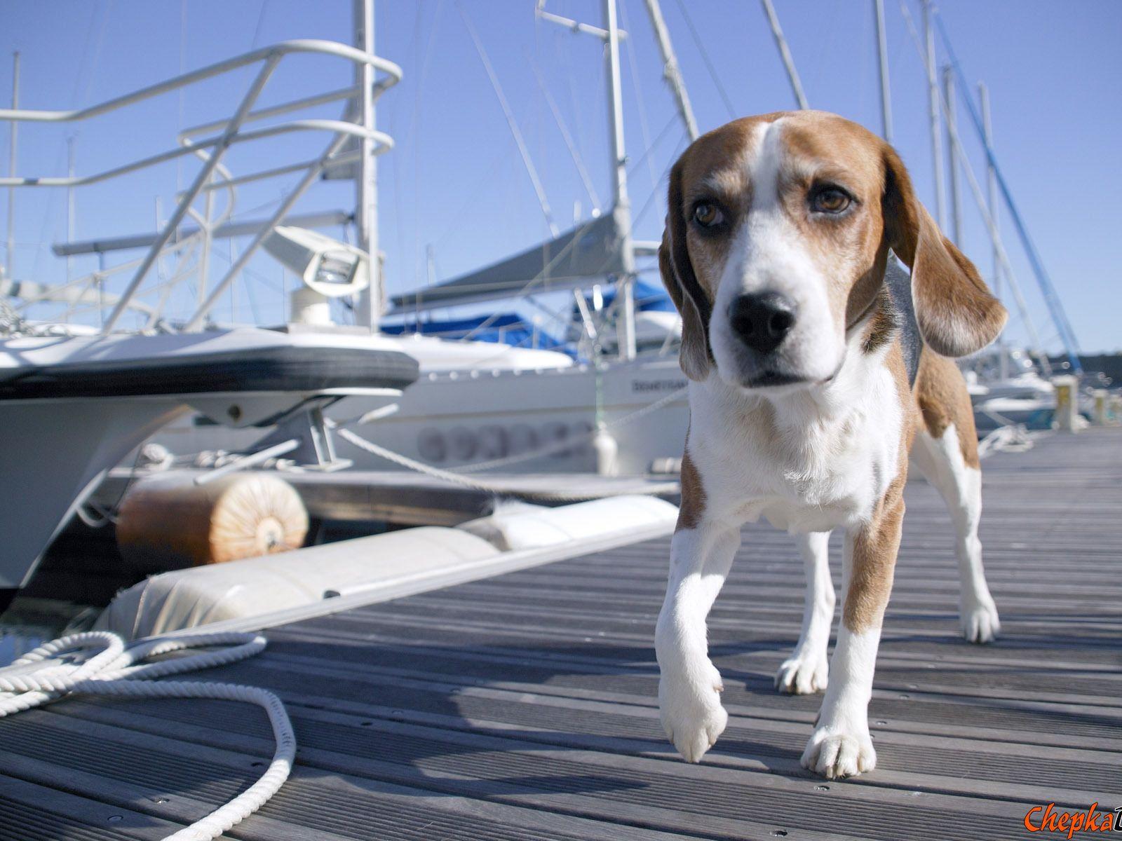 Wallpaper Beagle dog walking on the bridge