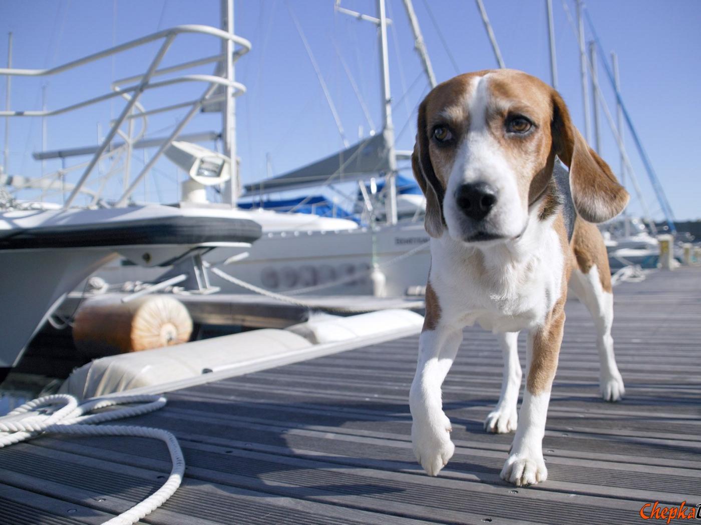 Wallpaper Beagle dog walking on the bridge