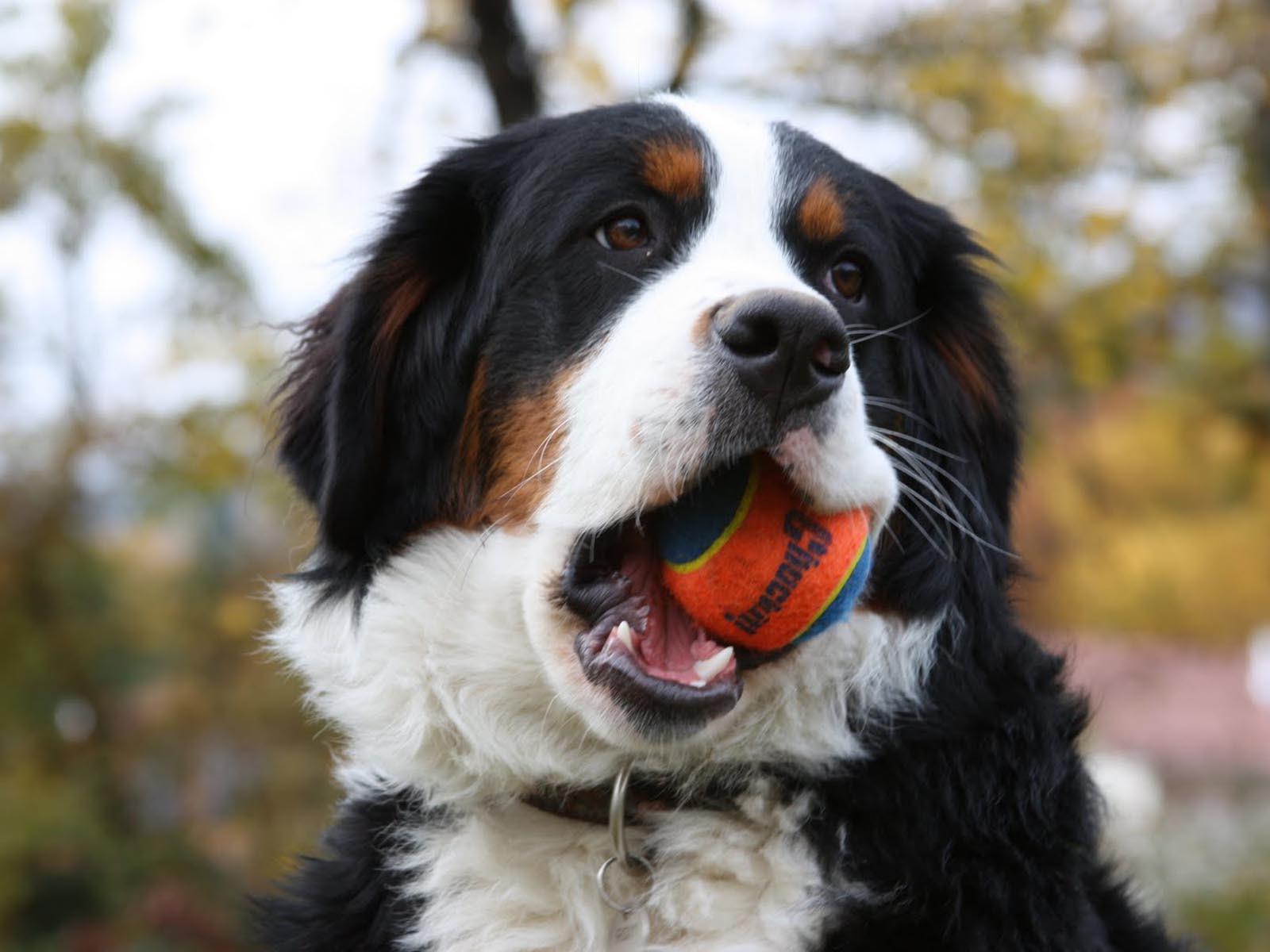 » Wallpaper Bernese Mountain Dog chews ball