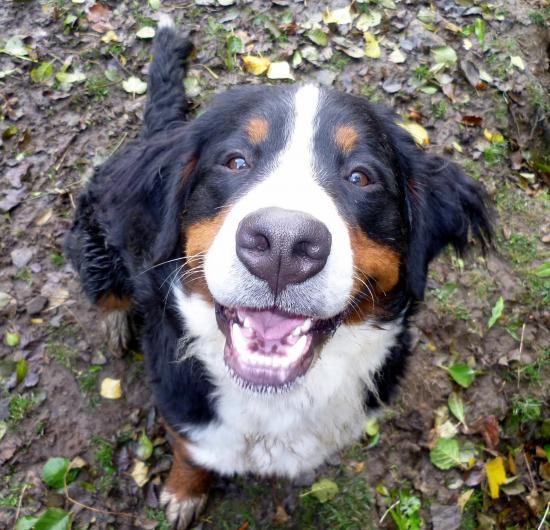 » Wallpaper Portrait of a smiling Bernese Mountain dog