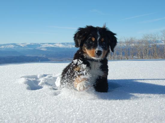 Wallpaper Bernese Mountain dog puppy in a snowdrift