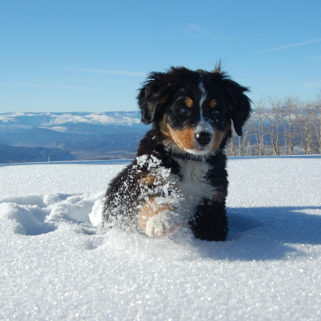 Wallpaper Bernese Mountain dog puppy in a snowdrift