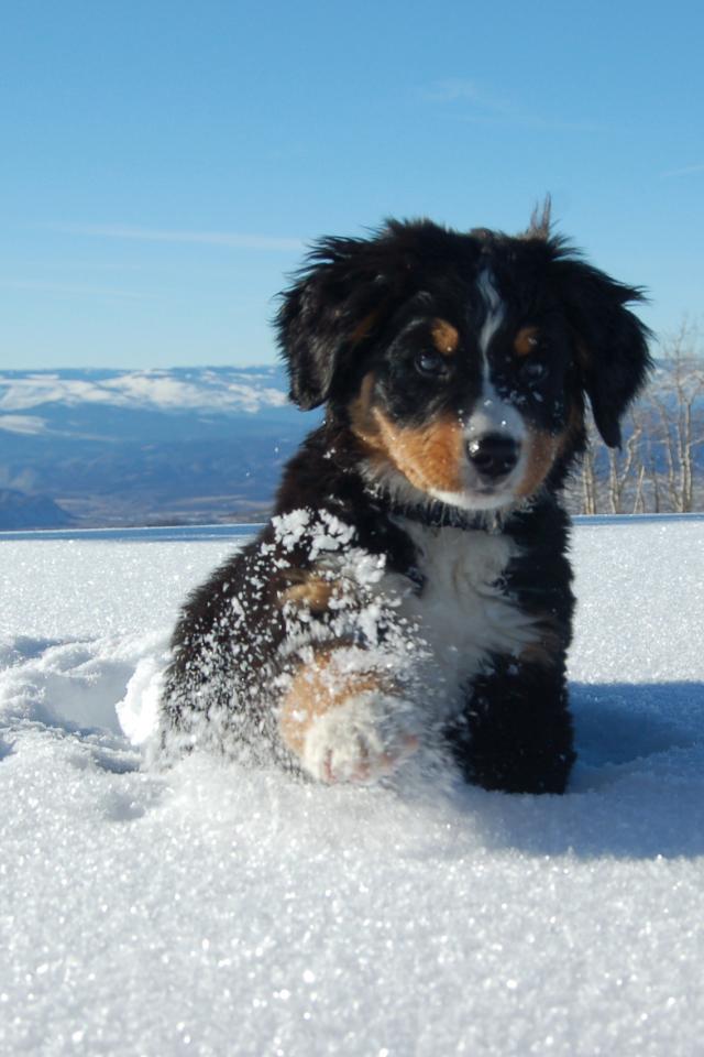 Wallpaper Bernese Mountain dog puppy in a snowdrift