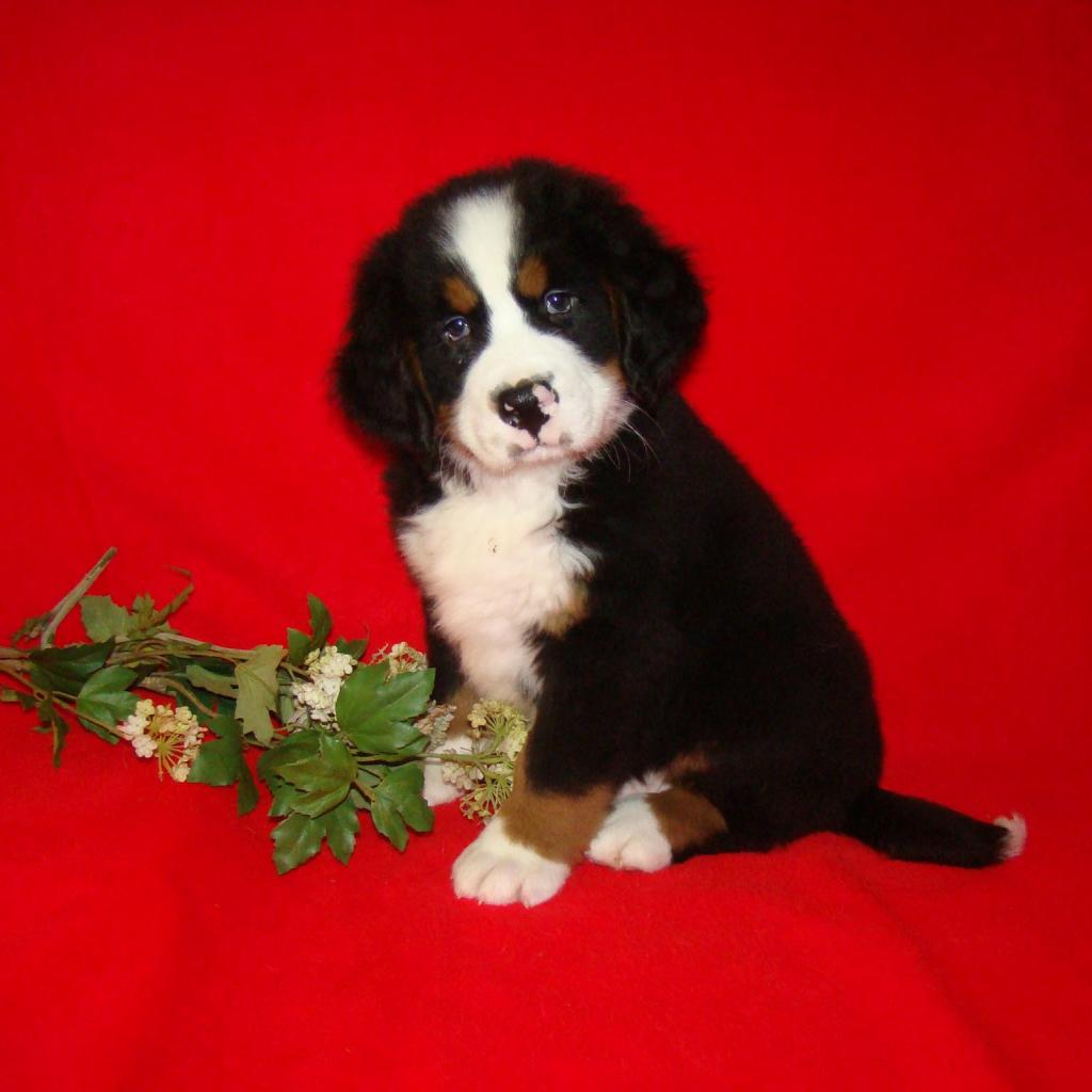Wallpaper Bernese Mountain dog puppy and flower