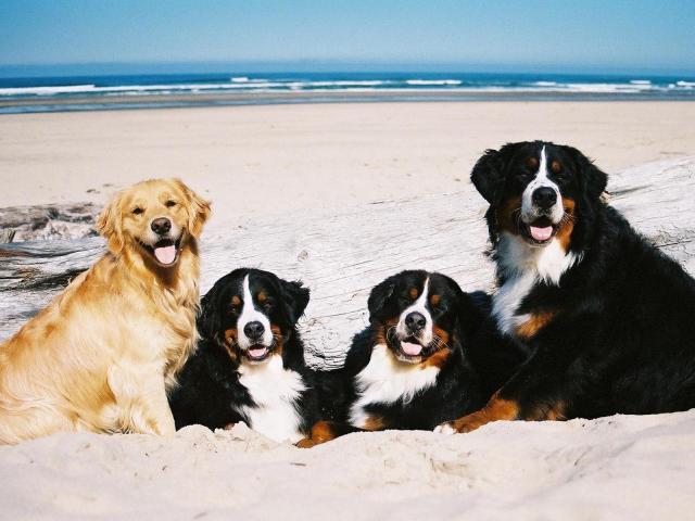 Wallpaper Bernese Mountain Dogs near the sea