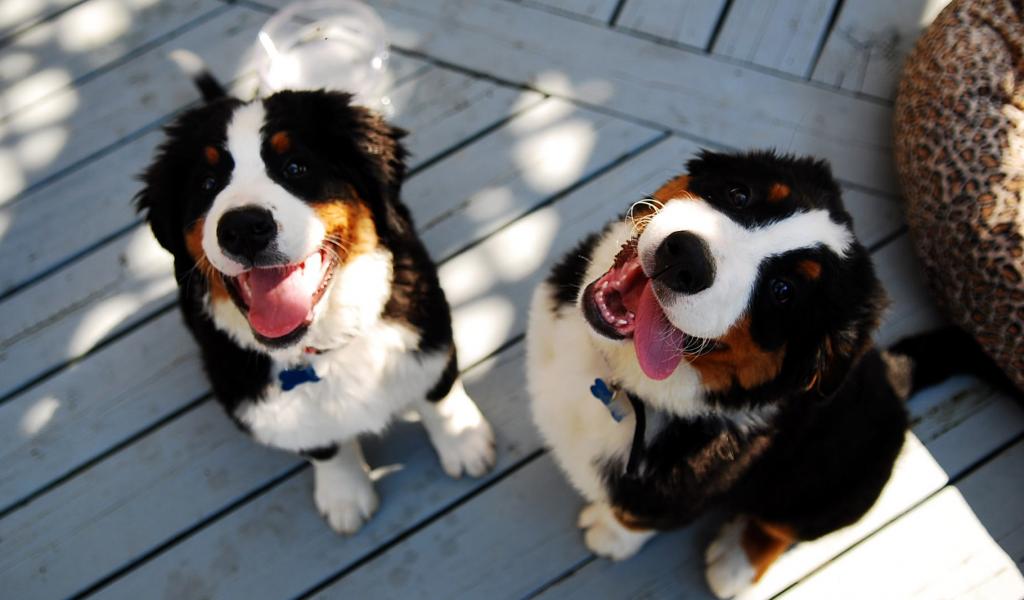 Wallpaper Bernese Mountain dog puppies smiling