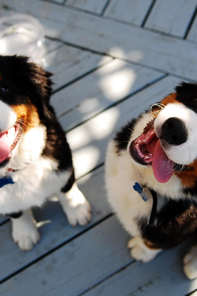 Wallpaper Bernese Mountain dog puppies smiling