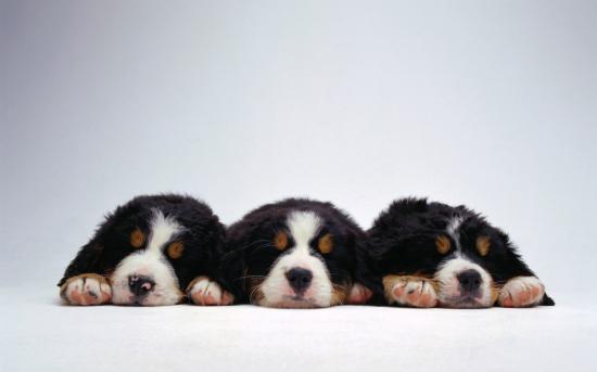 Wallpaper Cute puppies Bernese Mountain dog on a white background