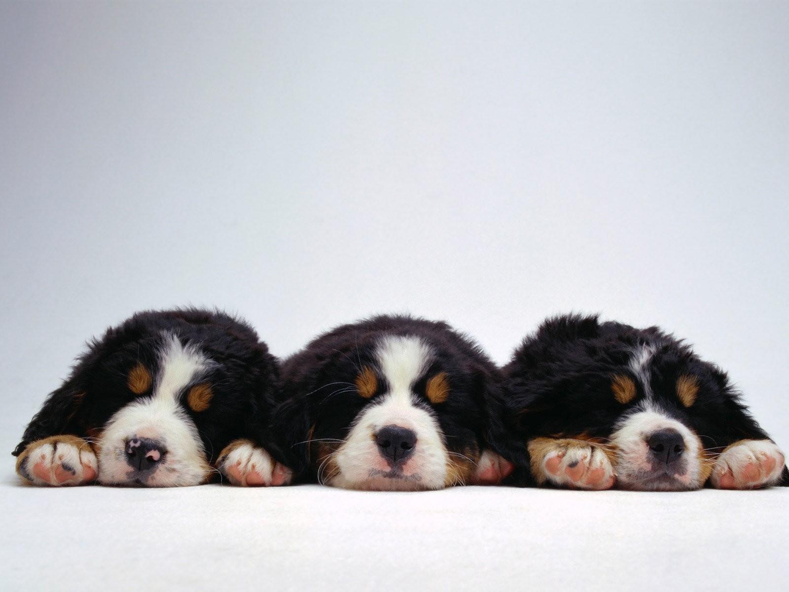Wallpaper Cute puppies Bernese Mountain dog on a white background