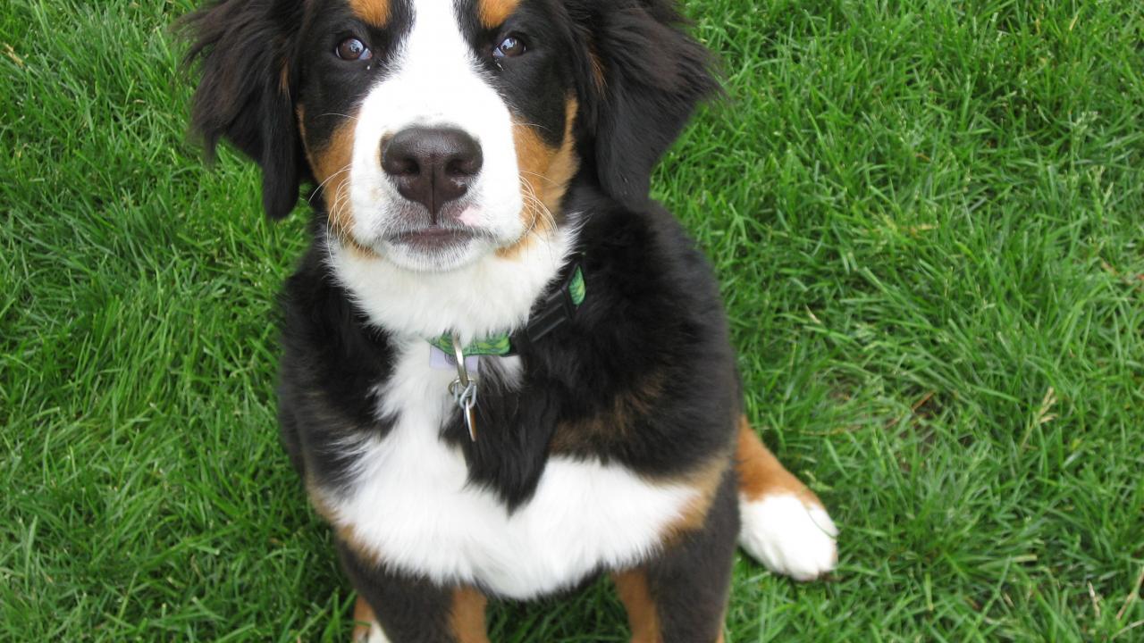 Wallpaper Beautiful puppy Bernese Mountain dog on the grass
