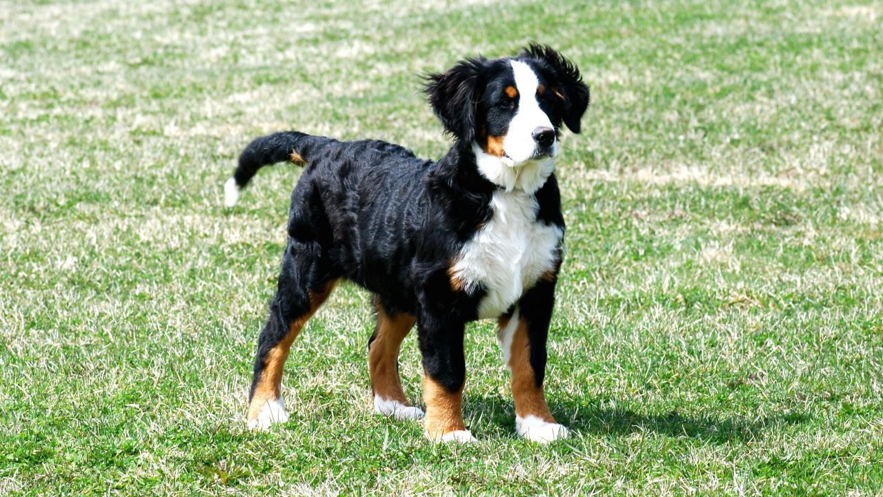 Wallpaper Bernese Mountain dog puppy on grass